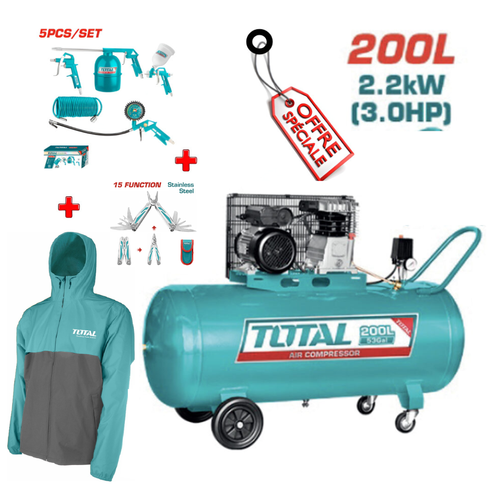 Compresseur : 200 L, 3 CV, pression jusqu’à 10 bars